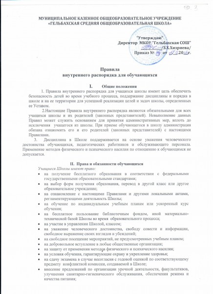 Правила внутреннего распорядка обучающихся (воспитанников)